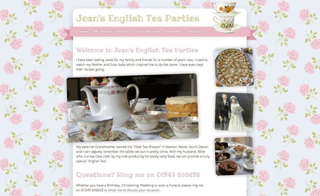 We’ve just designed a new website, including development of the brand “style”, for Jean’s English Tea Parties (and set up Jean’s Facebook page at Jean’s English Teas).