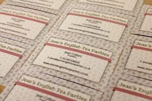 New business cards and letterhead designed and printed by O'Brien Media for Jean's English Tea Parties Order your business stationary, postcards, and business cards (with free design and delivery) through our